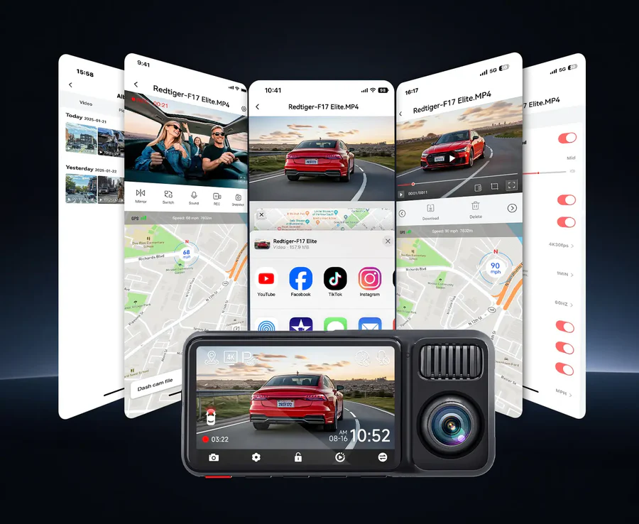 Redtiger F17 Elite 4K 3 Channel Dash Cam