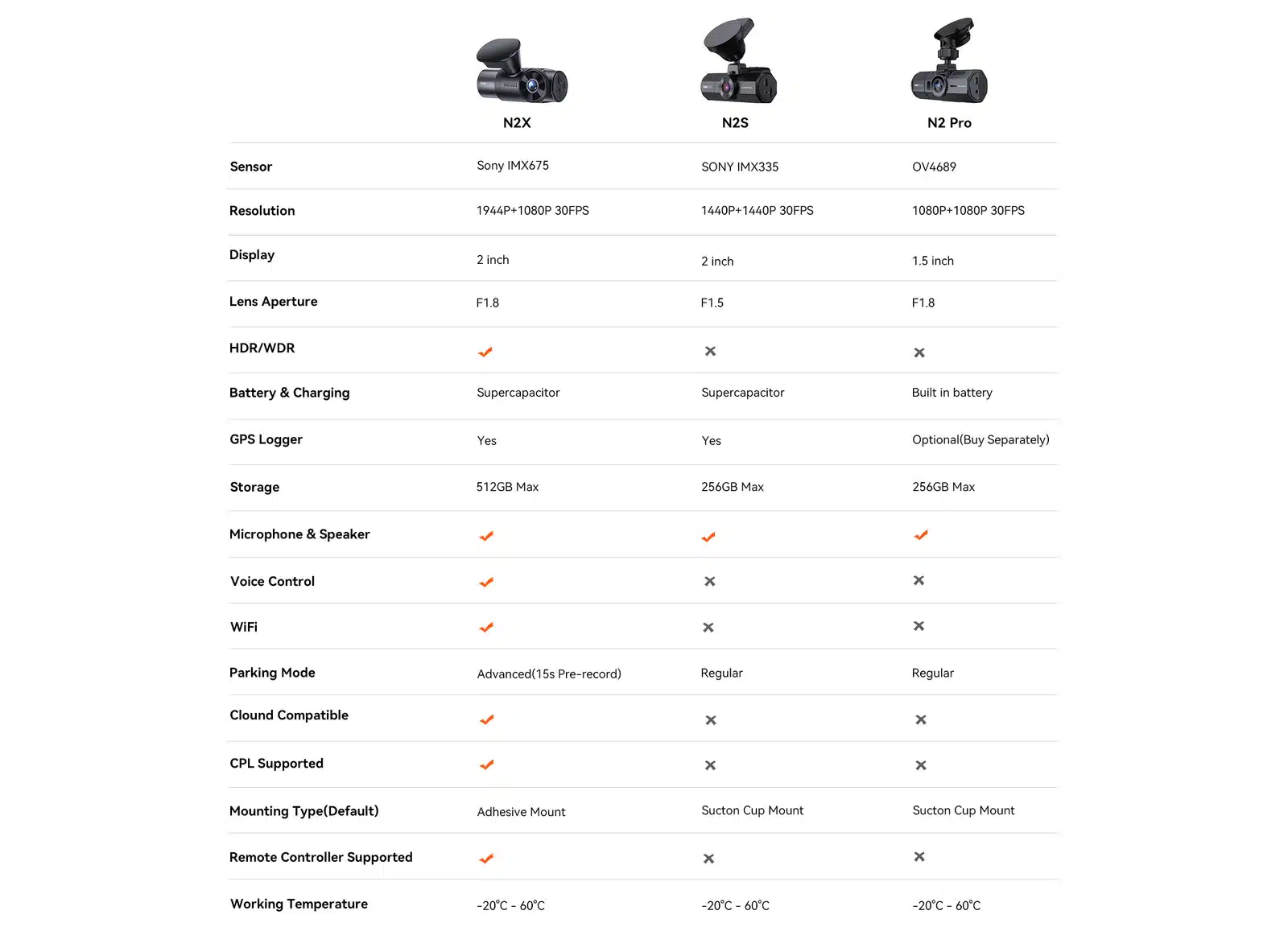 Vantrue N2X 2.7K Front & Interior Dash Cam