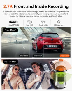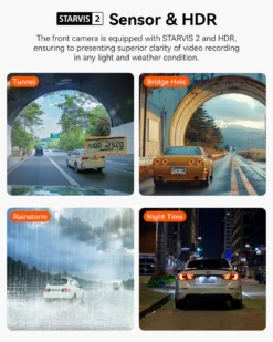 The front camera, featuring a Sony STARVIS 2 IMX675 5M CMOS sensor, records in 1944(or 1440P 60FPS), capturing fine details. With unique HDR technology, it balances exposure to reveal more details in ultra-low light and dark conditions.