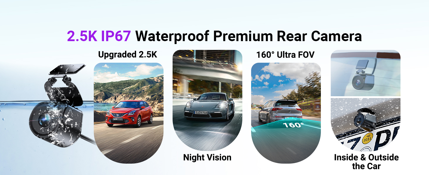 [2.5K IP67 Rear Camera] Waterproof IP67 1440P rear cam withstands rain, snow, and car washes. Includes 6m cable (longer optional).