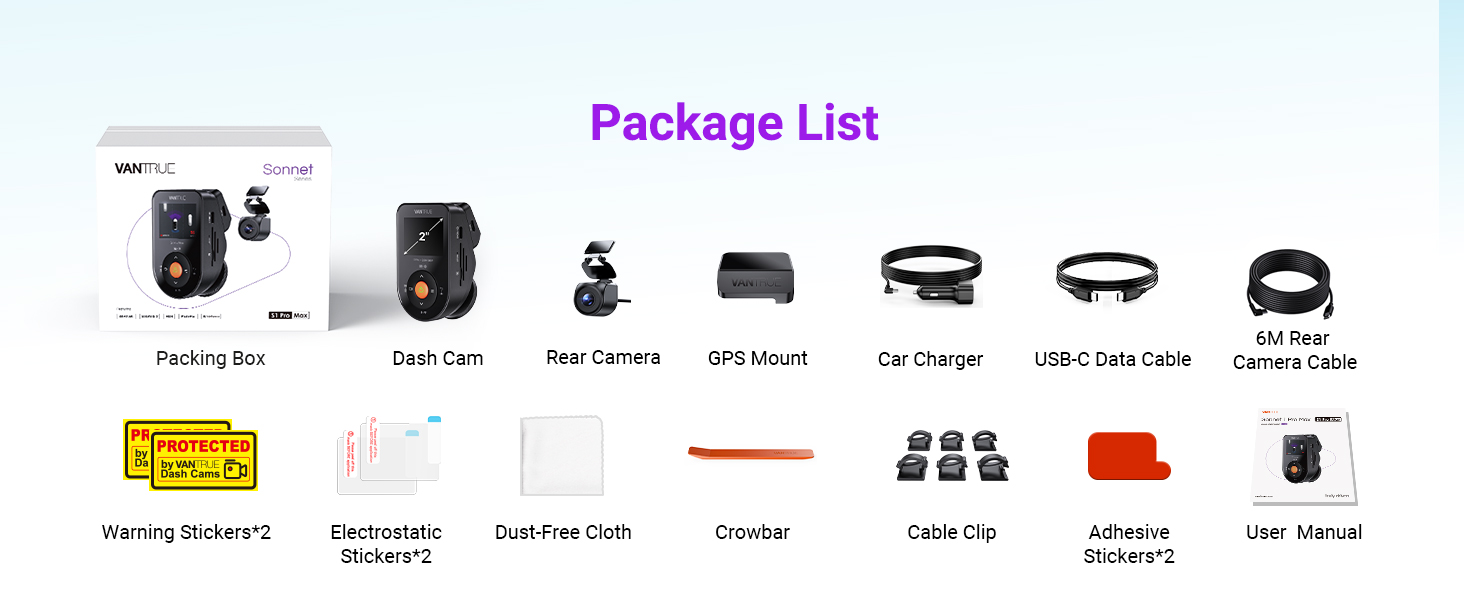 [4K+2.5K Flagship Dual Dash Cam] Vantrue S1 Pro Max records 3840×2160P front + 2560×1440P rear at 30FPS—4× sharper than 1080P. Powered by Sony IMX678 (front) + IMX675 (rear), it captures plates up to 30m away with 155°+160° wide angles to reduce blind spots. Ideal for accident evidence in cars, trucks, RVs, and taxis.