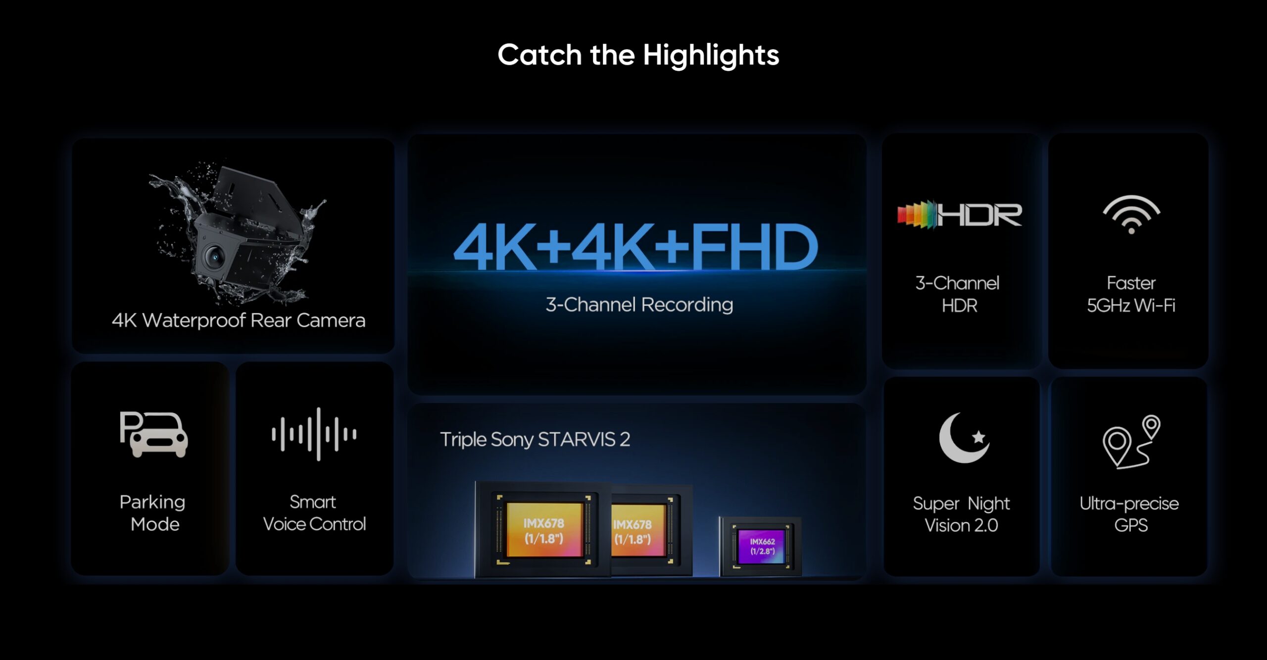 • Triple Sony STARVIS 2 Sensors, 3-Channel HDR, Ultra Fast 5GHz Wi-Fi & Precise GPS