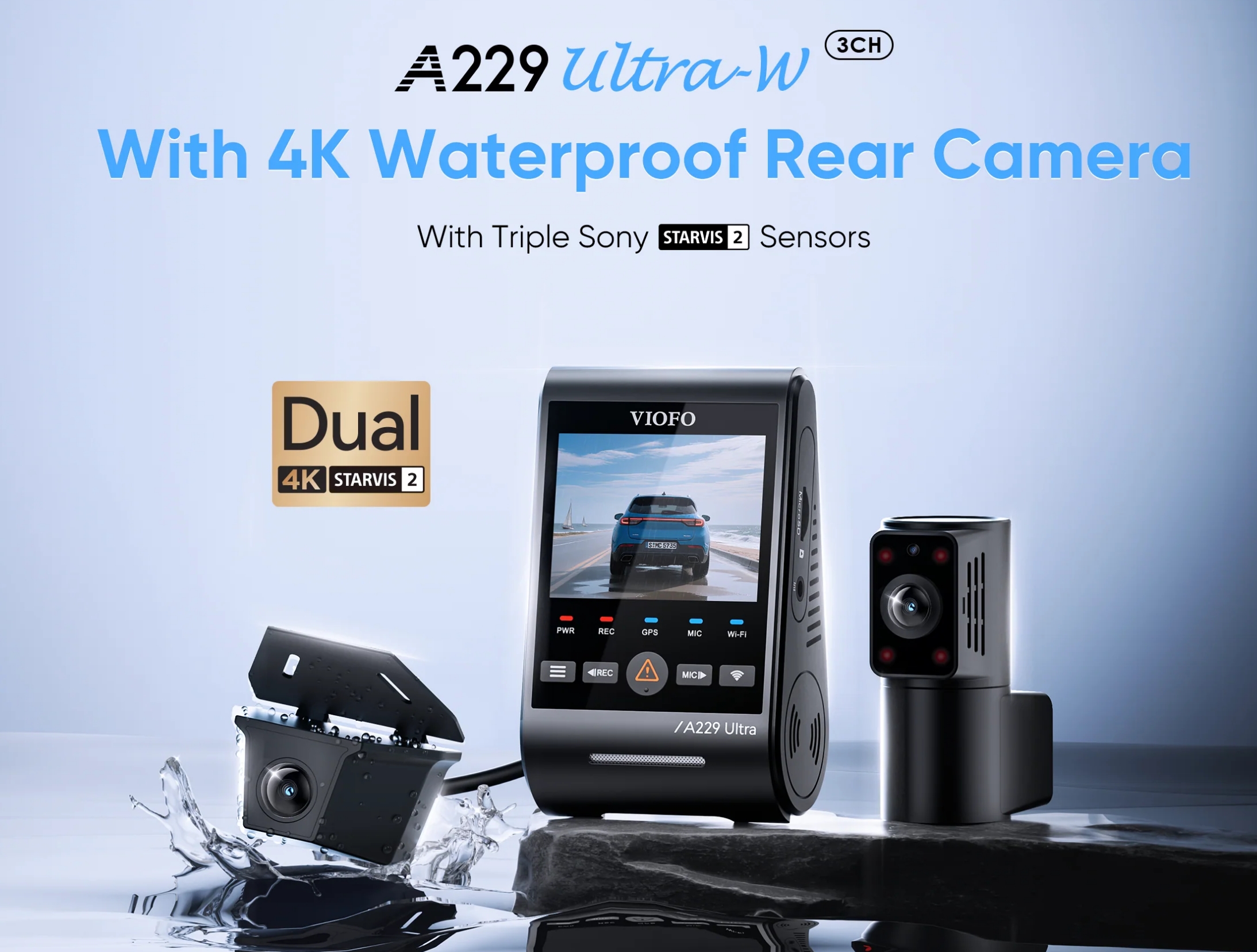 VIOFO A229 Ultra W 3CH 4K Front+4K Waterproof Rear Camera+1080P Fisheye Cabin Camera